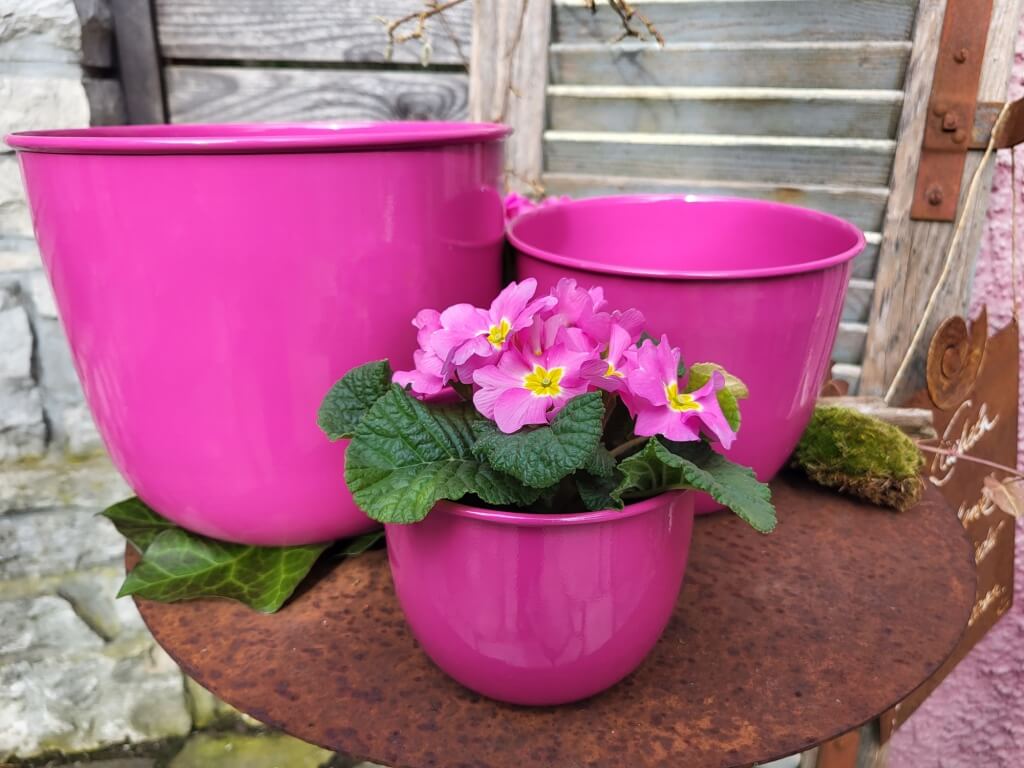 Dieses 3er-Set von Pflanztöpfen besticht durch seine knallpinke Farbe.