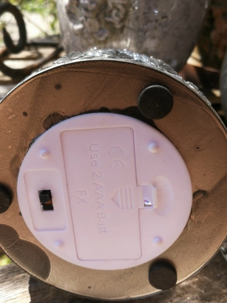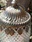 Der massive, silberne Glaskörper wird von orientlisch anmutenden Metallverzierungen umrandet und funkelt auch ohne Beleuchtung wunderschön.