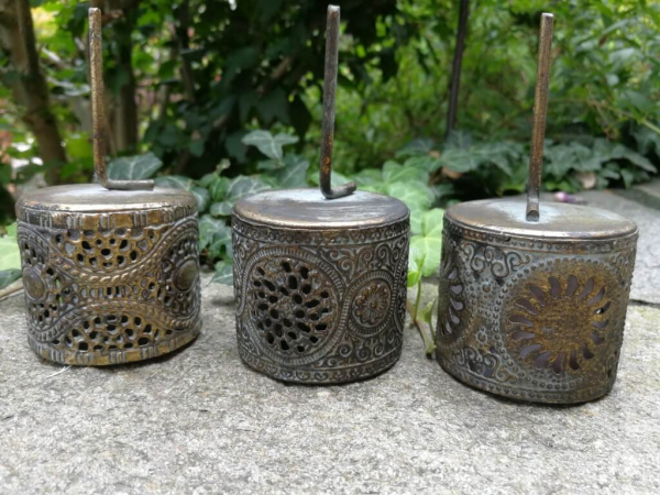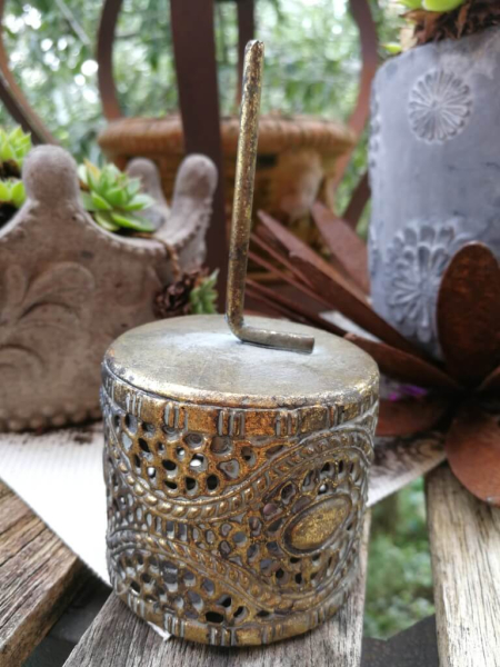 Diese praktischen und zugleich sehr eleganten Teelichthalter zum Stecken aus Metall sind in Altgold mit einem Hauch Shabby Chic gestaltet.