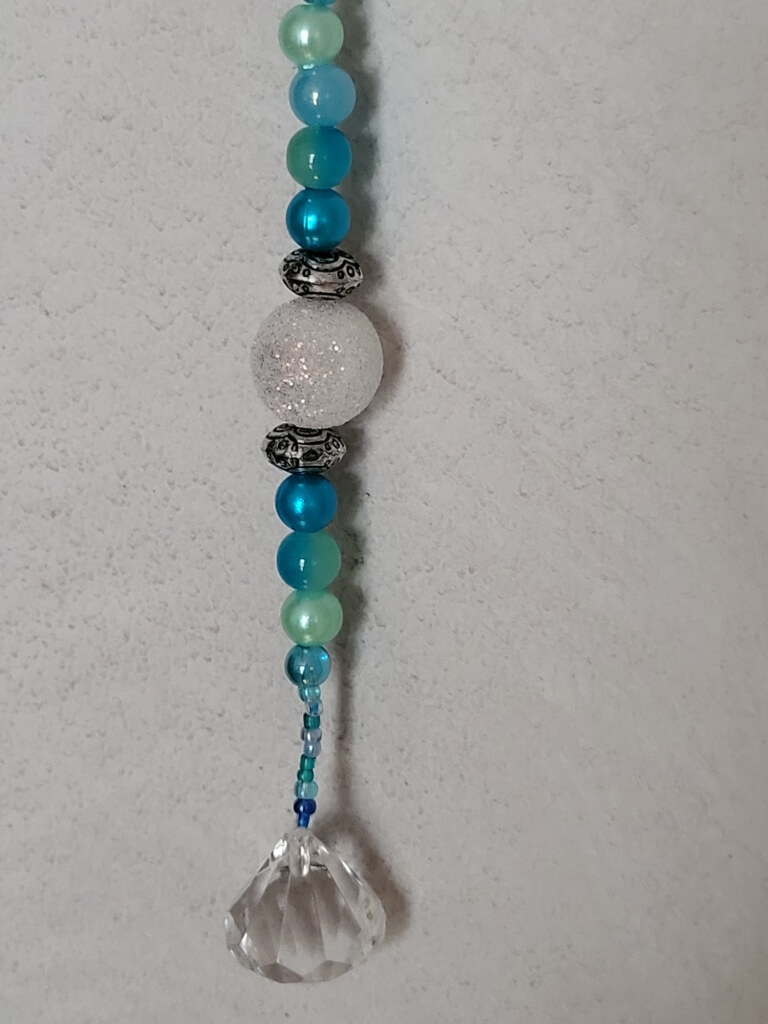 Ein Traum in türkis, versetzt mit vielen Glassteinen, die in der Sonne funkeln, ist dieser Sonnenfänger.