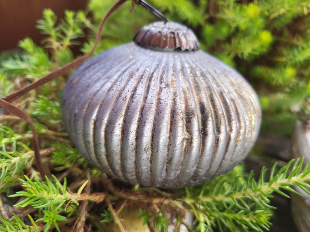 Hängen Sie die Kugel ins Fenster oder dekorieren Sie das Adventsgesteck damit (für den Weihnachtsbaum eher zu schwer).
