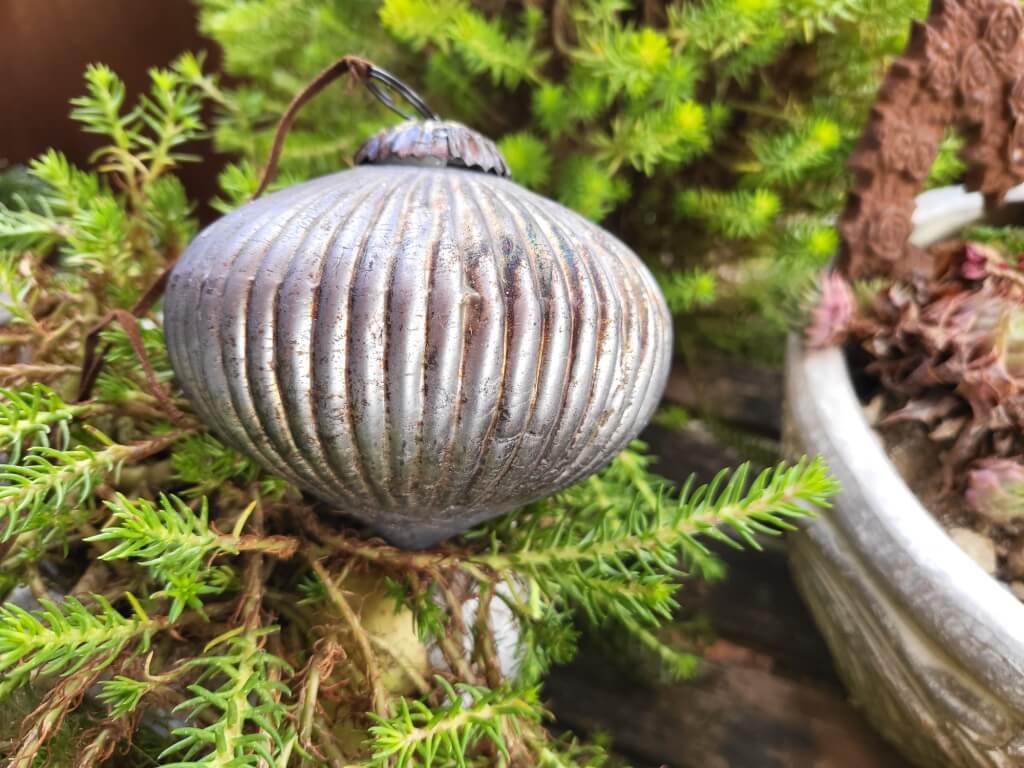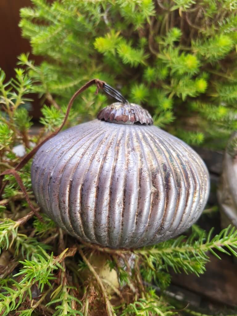 Christbaumkugel Athrios Rillen, groß, grau-braun, matt
