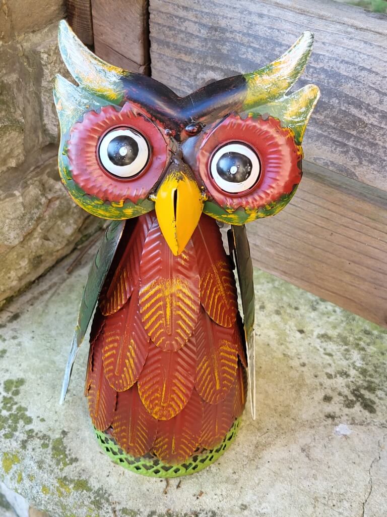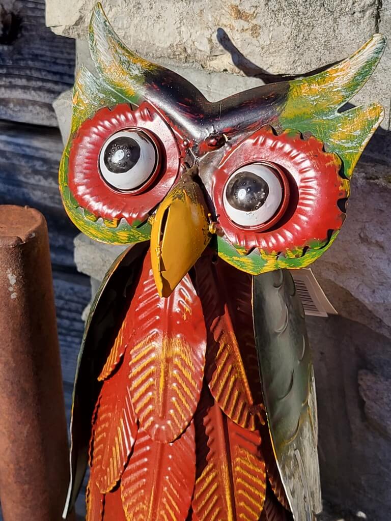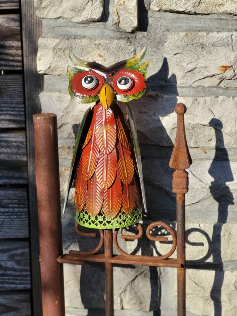 Diese aufwendig gearbeitete Eule in 3-D schmückt jeden Zaun durch ihr putziges Aussehen und ihre bestechenden Augen.
