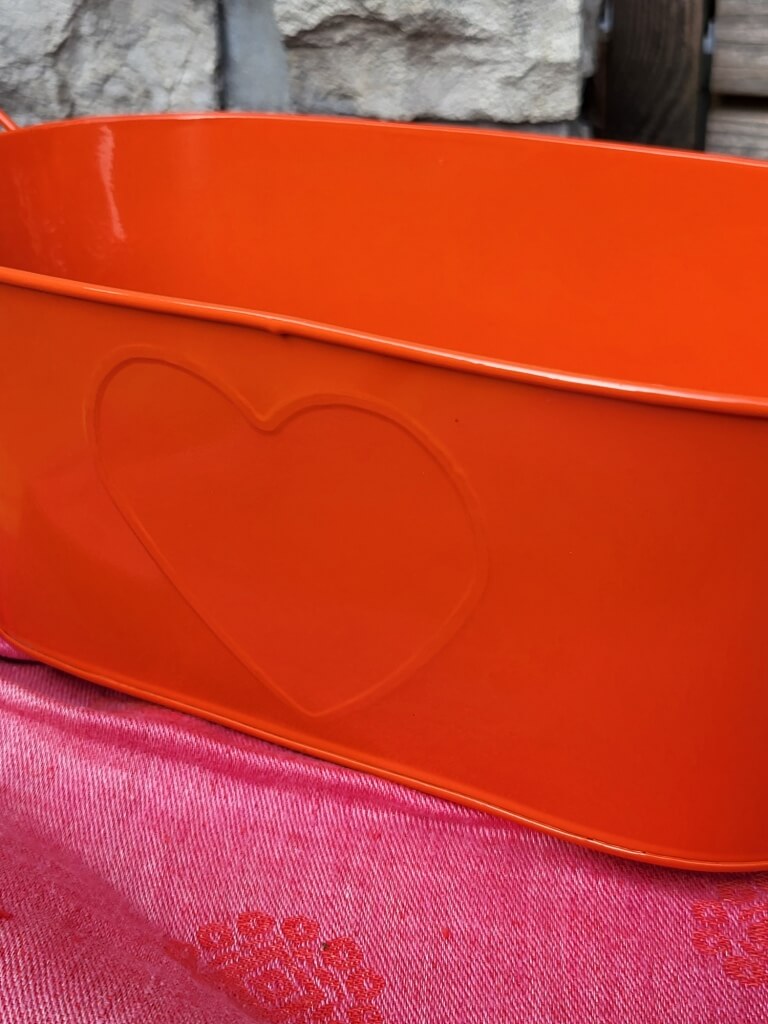 Der Topf ist in einem leuchtenden orange lackiert, wasserdicht und somit auch für den Innenbereich geeignet.