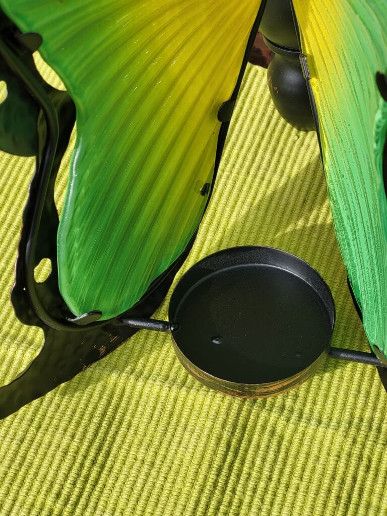 Auf der Rückseite sind 2 Ösen angebracht, um den Teelichthalter an einer Wand befestigen zu können.