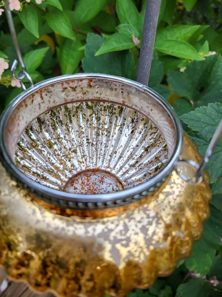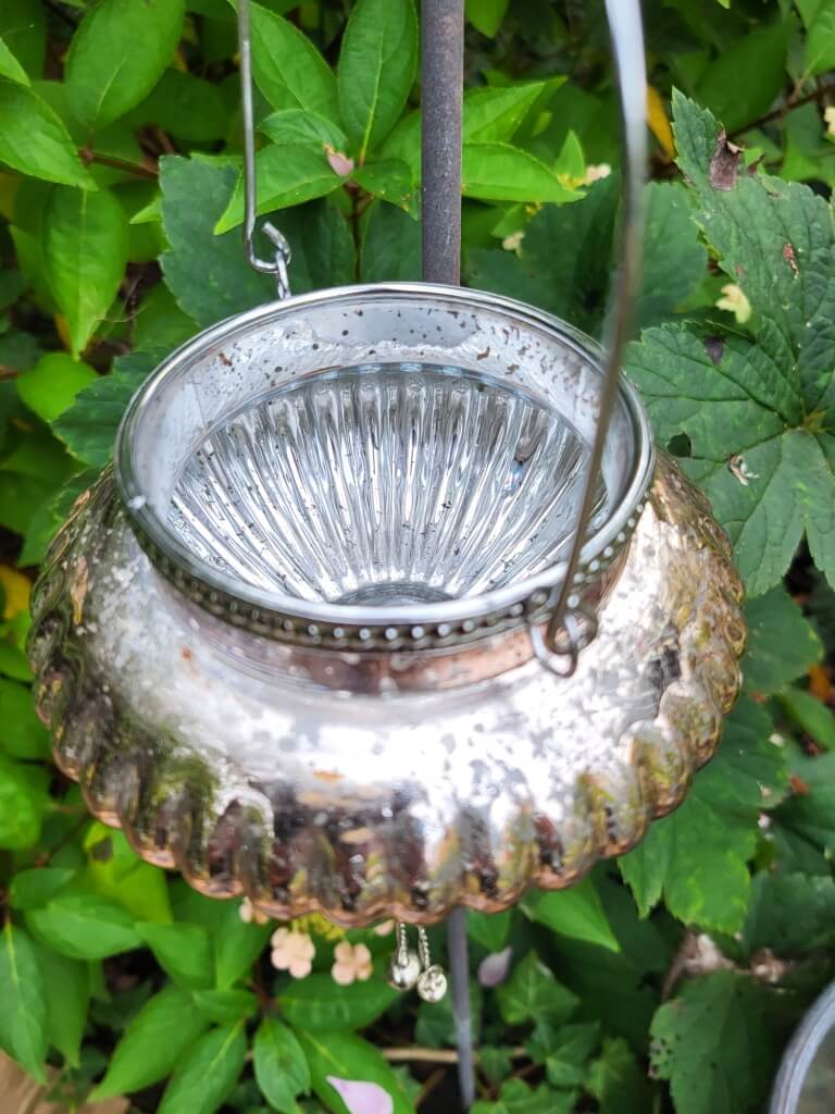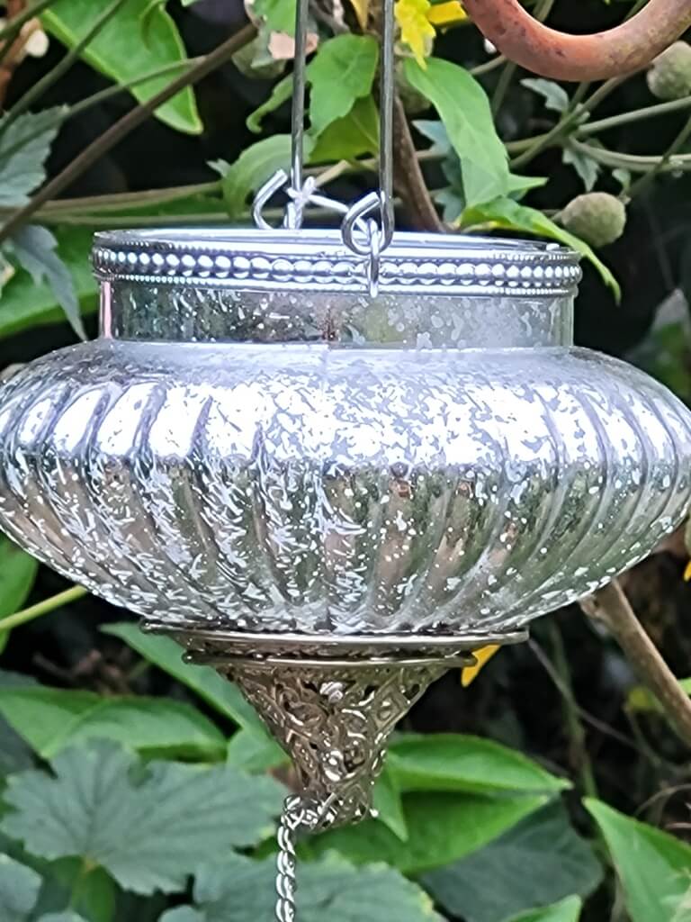 Der Glaskörper wird von orientlisch anmutenden Metallverzierungen umrandet, am unteren Ende befindet sich eine kleine Klingel.