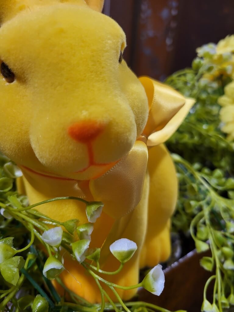 Der Hase in seinem leuchtenden Gelb fällt sofort ins Auge und ist überall in der Wohnung ein Augenschmaus und die perfekte Osterdeko.