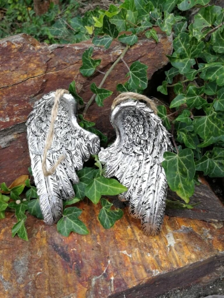 Polyresin Engelsflügelpaar zum Hängen, silber